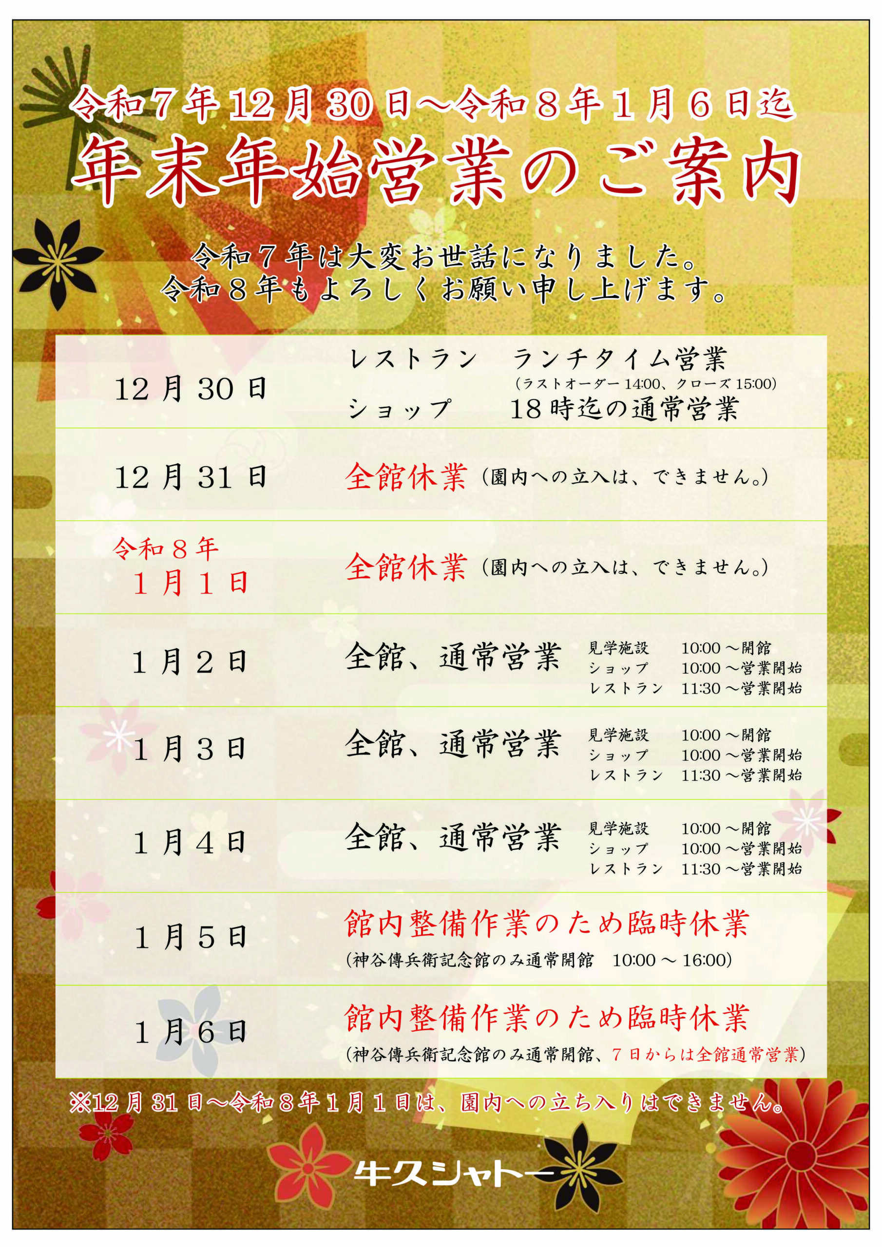 年末年始の営業について